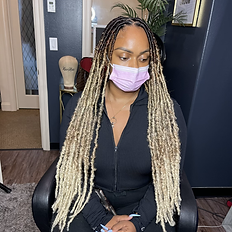Hand wrapped from dark brown to ombré into platinum distressed locs. Waist length is the only length for this look. Must come with hair clean and blowdried.